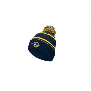 Broughal – 33. Striped Pom Beanie (Navy/Gold)
