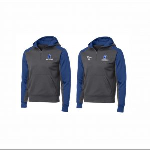 Spartans Softball – 21. 1/4 Zip Colorblock Hooded Sweatshirt (Graphite heather/Royal)