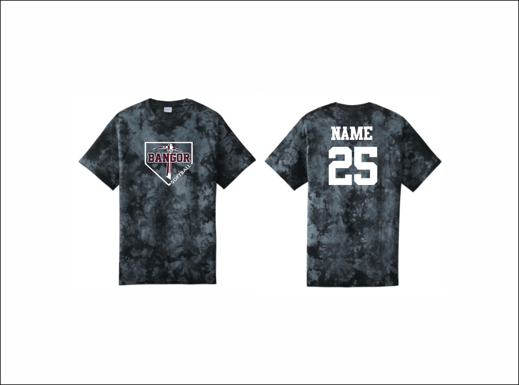 Bangor Softball – Short Sleeve Tie-Dye T-Shirt (Black) with logo on front