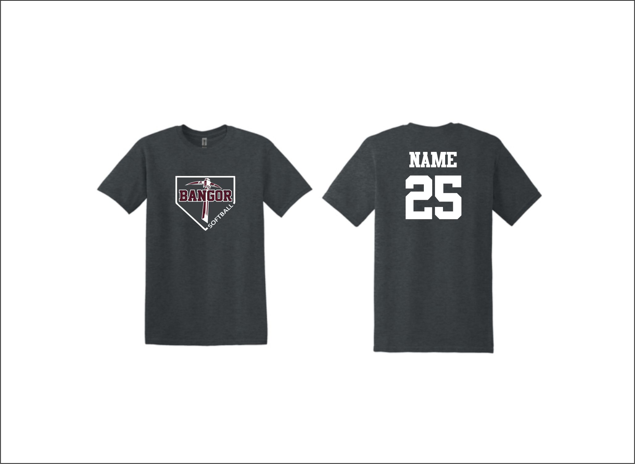 Bangor Softball – Short Sleeve Soft Cotton T-Shirt (Dk. Heather Gray) with screened logo on front