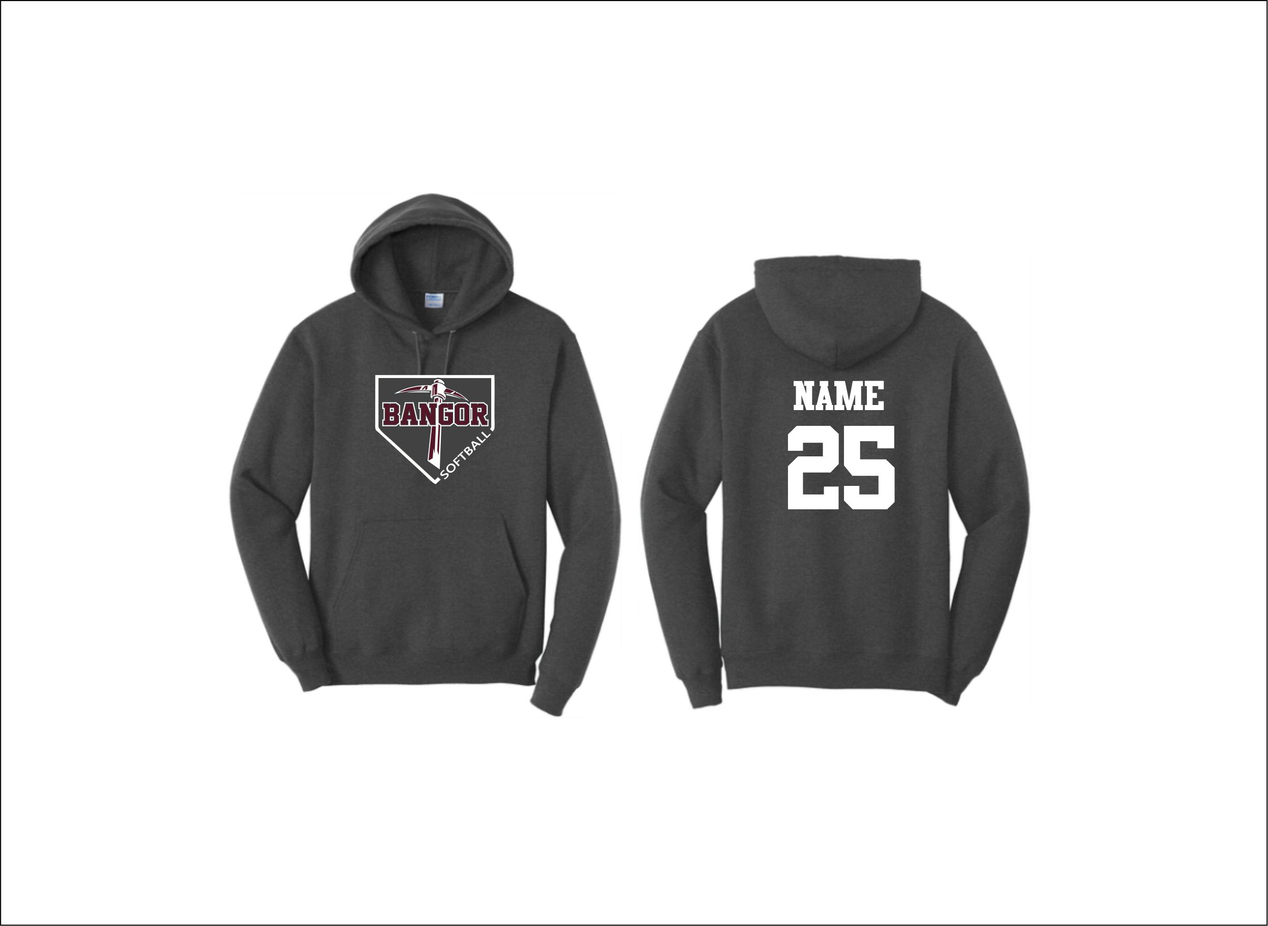 Bangor Softball – Hooded Sweatshirt (Dk. Grey Heather) with screened logo on front