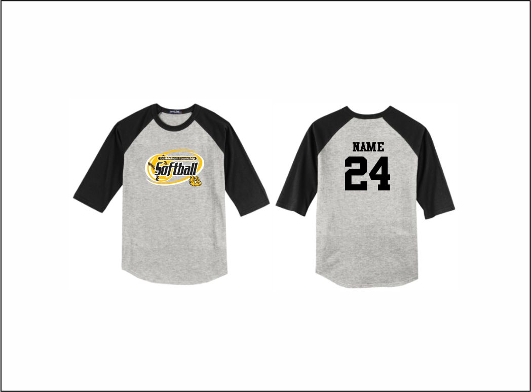 BTAA Softball – Raglan 3/4 Sleeve Baseball Shirt (Gray/Black) with logo on front