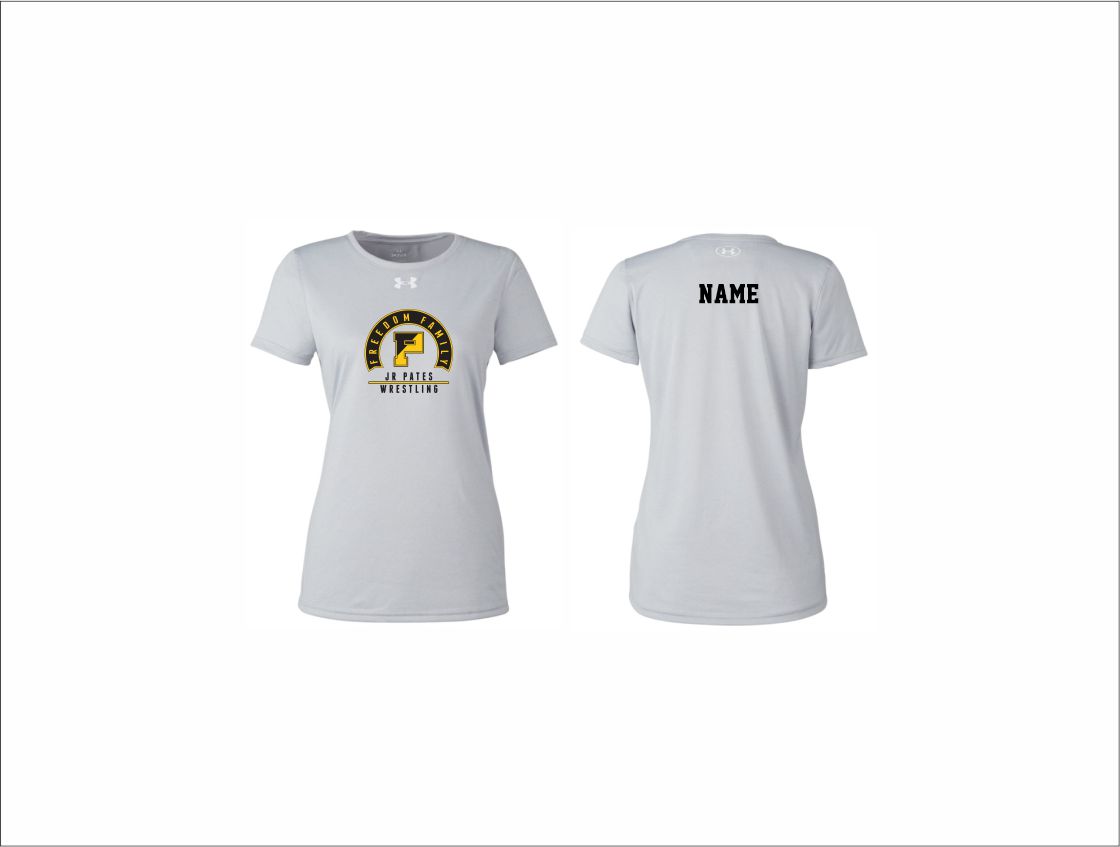 BTAA Wrestling – UA Women’s Tech Team Short Sleeve T-Shirt (Light Gray – Logo #1) with logo on front