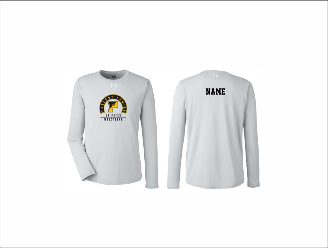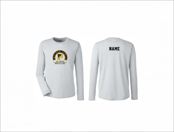 Jr Pates Wrestling – UA Tech Team Long Sleeve T-Shirt (Light Gray – Logo #1) with logo on front