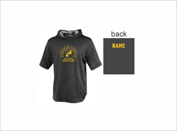 Jr Pates Wrestling – Short Sleeve Performance Warmup Hoodie (Black – Logo #1) with logo on front