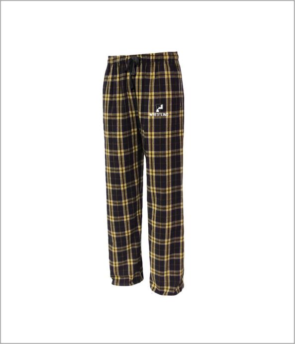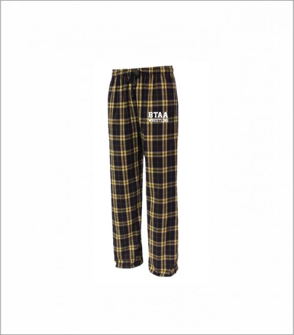 BTAA Wrestling – Flannel Pants (Black/Gold) with left thigh logo
