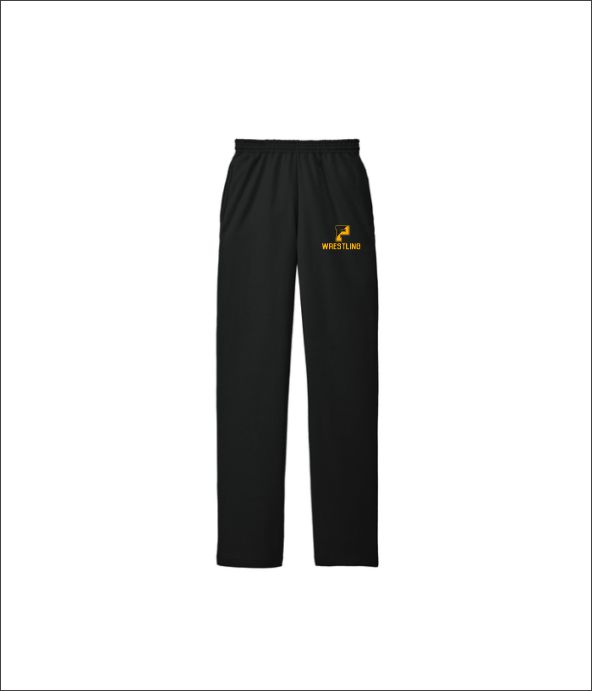 Jr Pates Wrestling – Open Bottom Sweatpants (Black) with logo left thigh