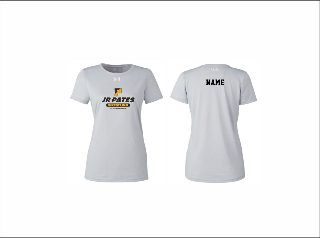 Jr Pates Wrestling – UA Women’s Tech Team Short Sleeve T-Shirt (Light Gray – Logo #2) with logo on front