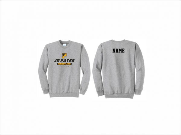 Jr Pates Wrestling – Crewneck Sweatshirt (Gray – logo 2) with logo on front