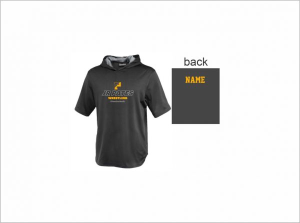 Jr Pates Wrestling – Short Sleeve Performance Warmup Hoodie (Black – Logo #2) with logo on front