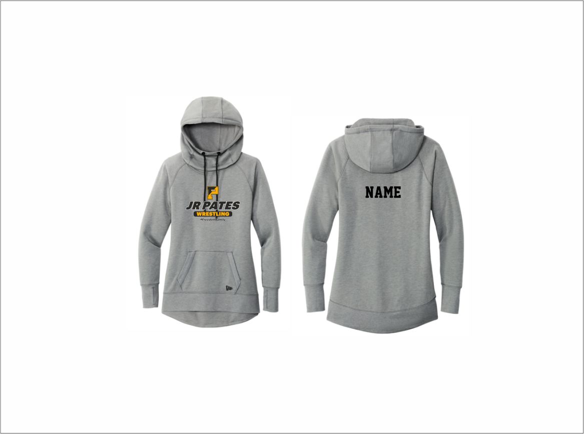 Jr Pates Wrestling – Ladies Tri-Blend Pullover Hoodie (Gray Heather – Logo #2) with logo on front