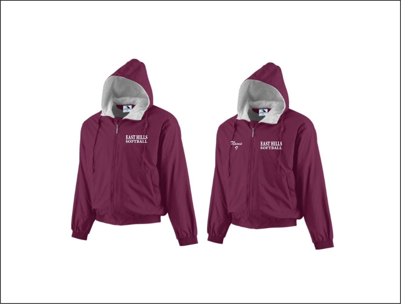 East Hills Softball – 19. Full Zip Hooded Jacket (Maroon)