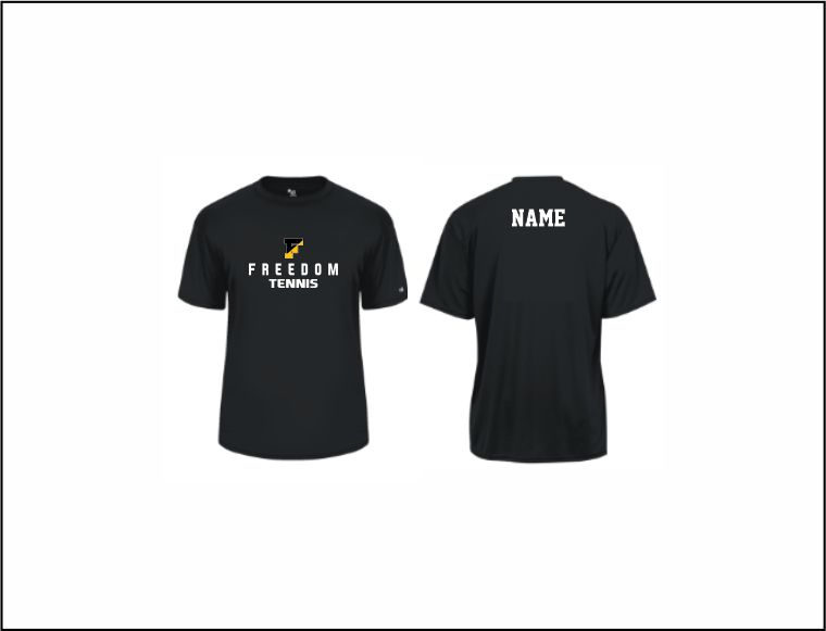 FHS Tennis – Short Sleeve Performance Shirt (Black) with logo on front