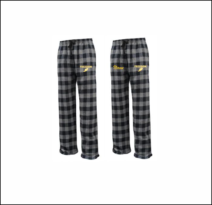 FHS Track & Field – Flannel Buffalo Plaid Pants (Black/Gray) with logo left thigh