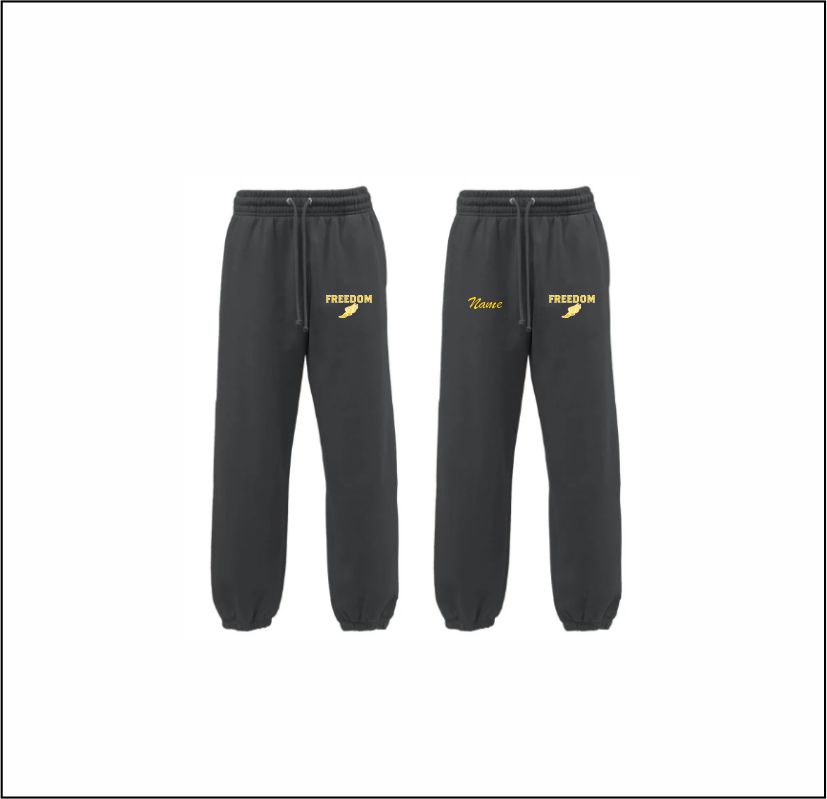 FHS Track & Field – Ladies Gathered Bottom Sweatpants (Black) with logo on left thigh
