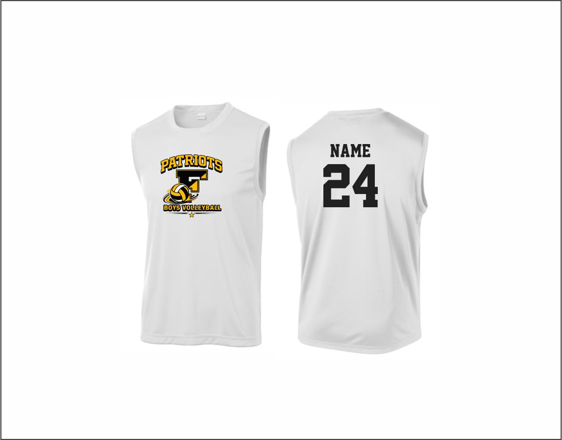 Freedom Boys Volleyball – Sleeveless Performance Shirt (White) with logo on front