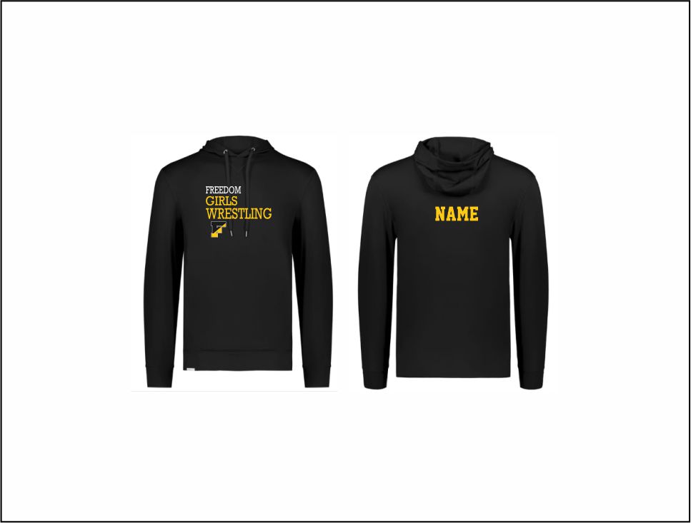 Freedom Girls Wrestling – Light Soft Knit Performance Hoodie (Black – logo 1) with screened logo on front