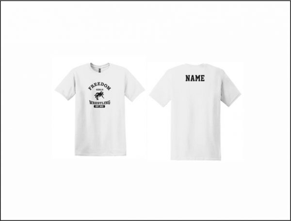 Freedom Girls Wrestling – Short Sleeve Cotton T-shirt (White – logo #2) with screened logo on front