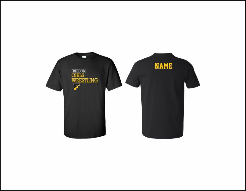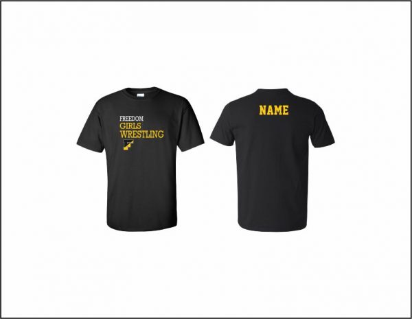 Freedom Girls Wrestling – Short Sleeve Cotton T-shirt (Black – logo #1) with screened logo on front