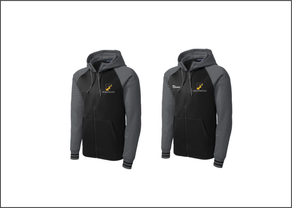 Freedom Wrestling – Performance Fleece Full Zip Hooded Sweatshirt (Black/Graphite) with embroidered logo left chest