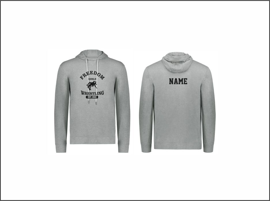 Freedom Girls Wrestling – Light Soft Knit Performance Hoodie (Gray Heather – logo 2) with screened logo on front