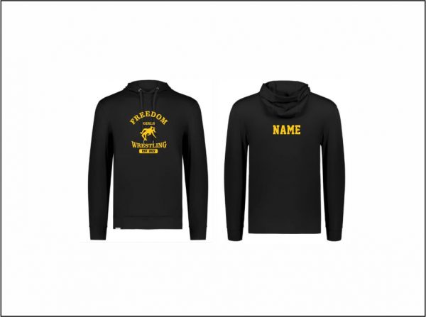 Freedom Girls Wrestling – Light Soft Knit Performance Hoodie (Black – logo 2) with screened logo on front