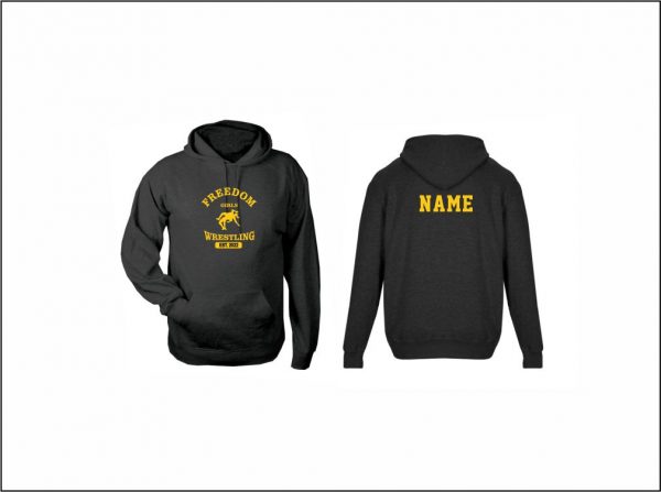 Freedom Girls Wrestling – Hooded Sweatshirt (Black – logo #2) with screened logo on front