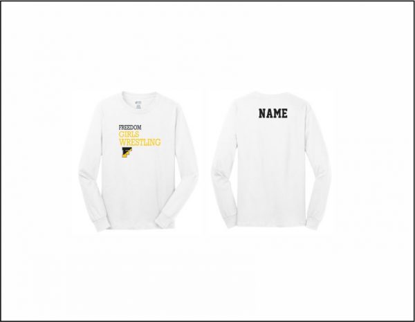 Freedom Girls Wrestling –  Long Sleeve Cotton T-shirt (White – logo #1) with screened logo on front