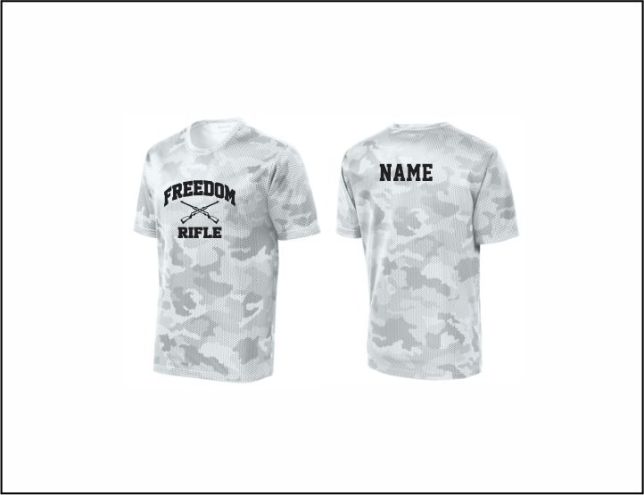 Freedom Rifle – Short Sleeve CamoHex Performance Shirt (White) with logo on front