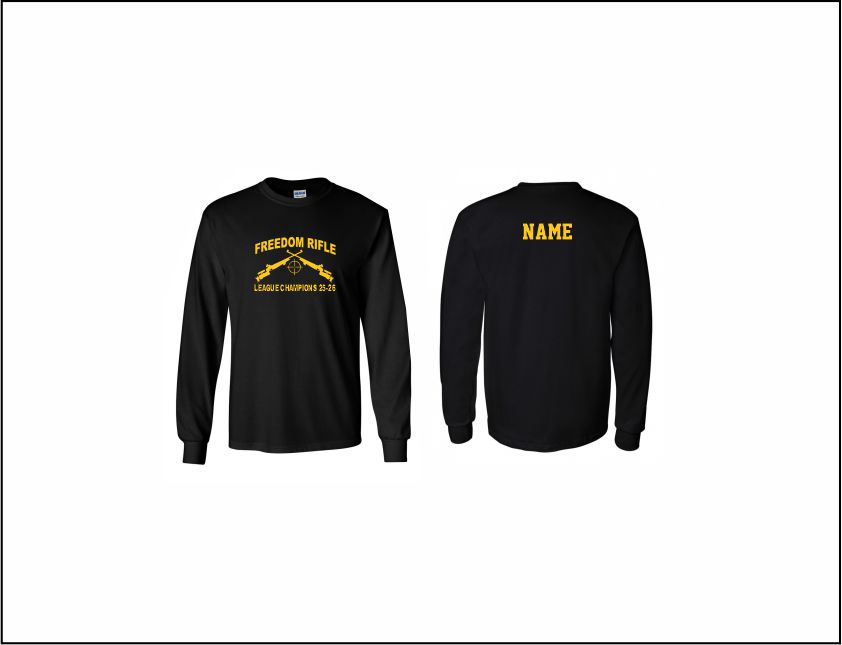 Freedom Rifle Champs – Long Sleeve Cotton T-Shirt (Black) with logo on front