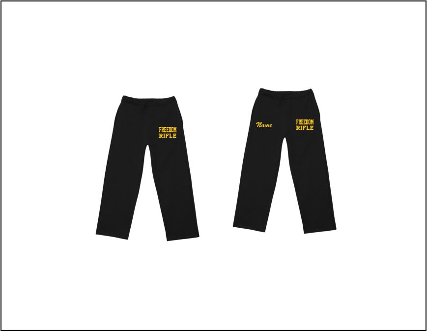 Freedom Rifle – Open Bottom Sweatpants (Black) with left thigh logo