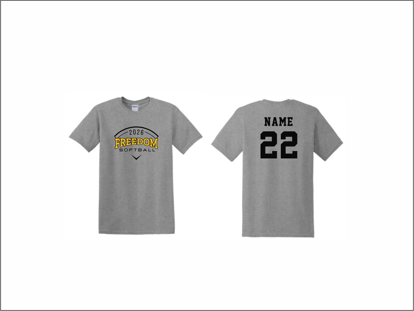 Freedom Softball – Short Sleeve Cotton T-Shirt (Gray) with screened logo on front
