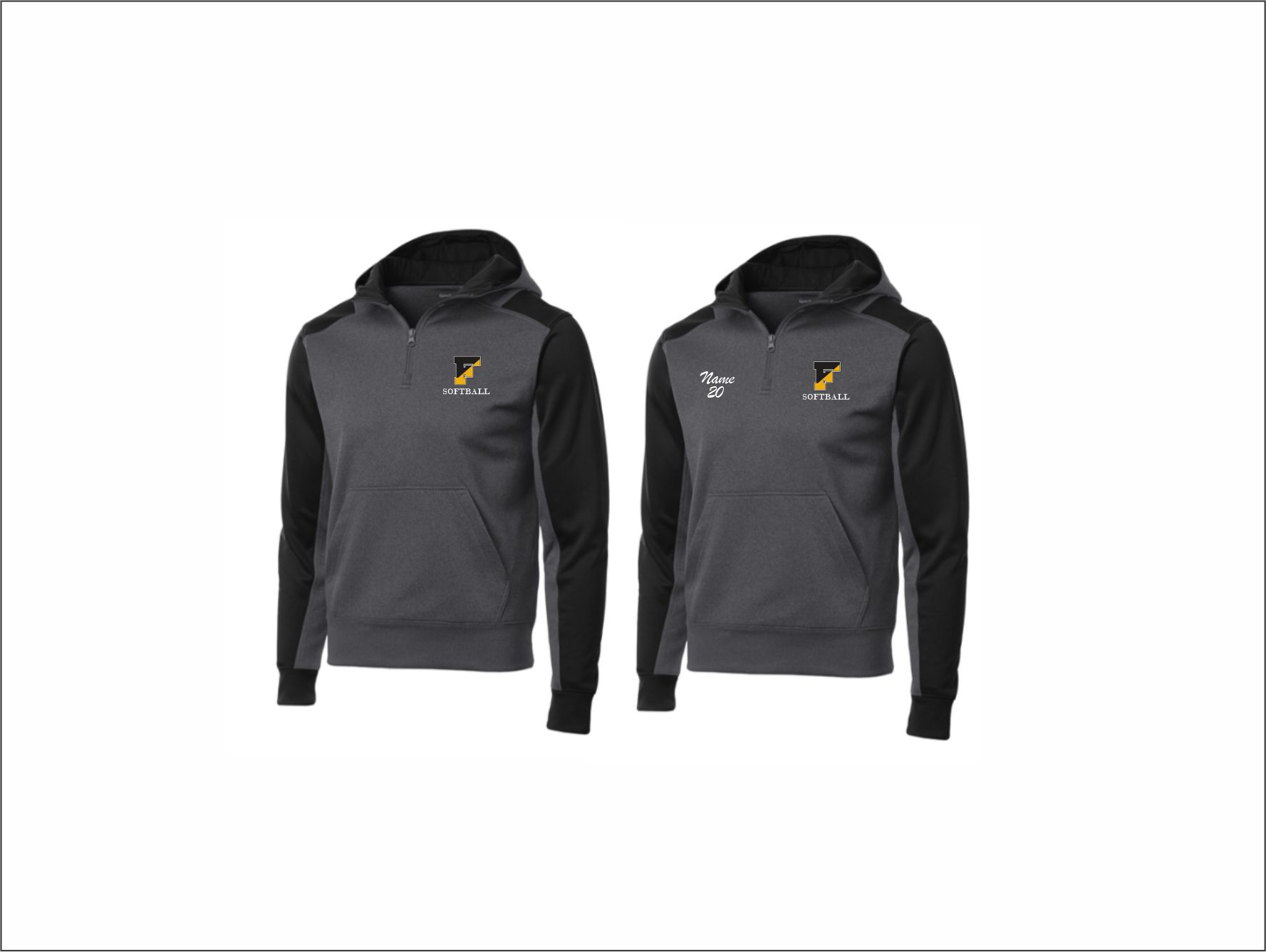 Freedom Softball – 27. 1/4 Zip Colorblock Hooded Sweatshirt (Graphite heather/black)