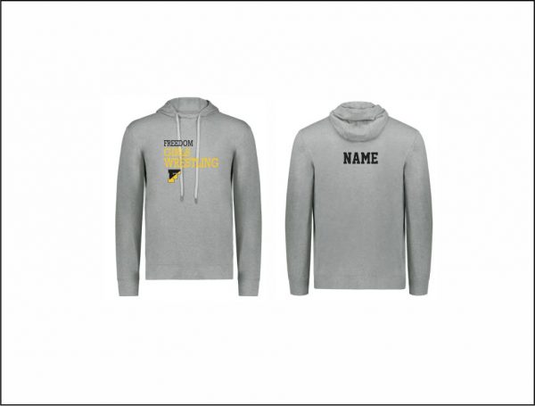 Freedom Girls Wrestling – Light Soft Knit Performance Hoodie (Gray Heather – logo 1) with screened logo on front