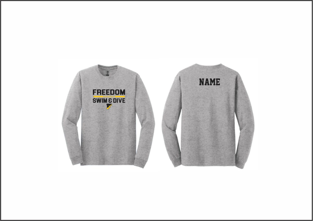 Freedom Swim & Dive – Long Sleeve Cotton T-Shirt (Gray) with logo on front