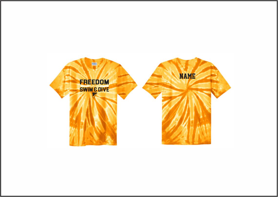 Freedom Swim & Dive – Short Sleeve Tie-Dye T-Shirt (Gold) with logo on front