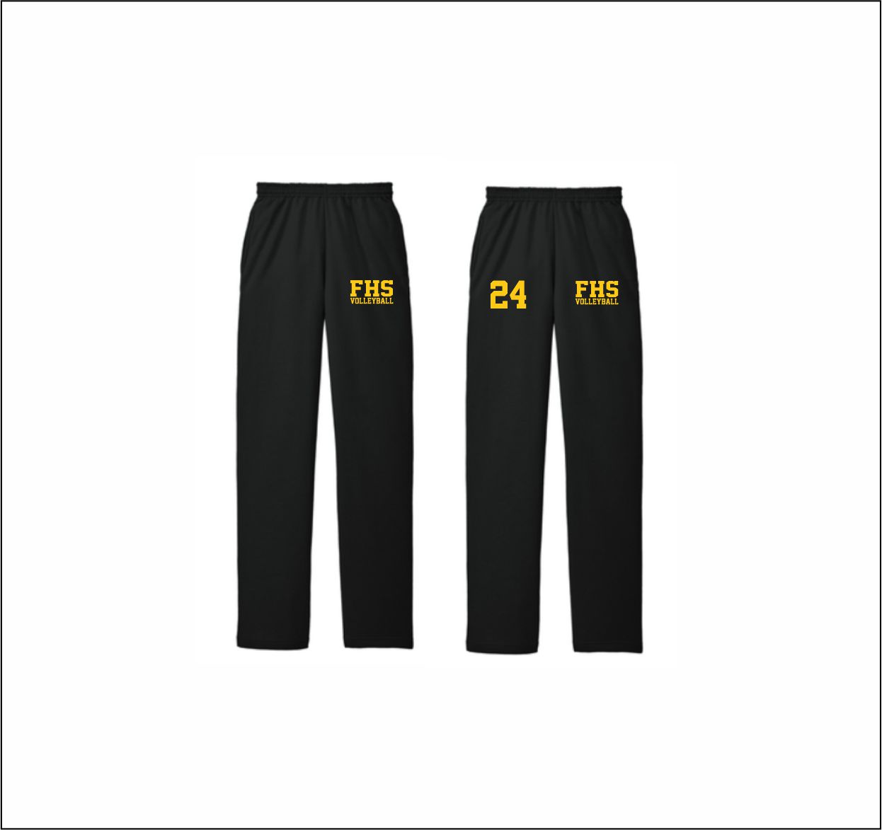 Freedom Volleyball – Open Bottom Sweatpants (Black) with left thigh logo