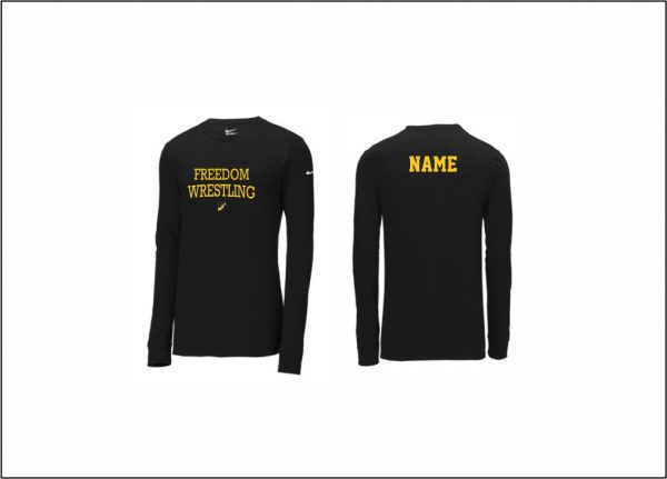 Freedom Wrestling – Long Sleeve Nike Dri-Fit Shirt (Black – logo #1) with screened logo on front