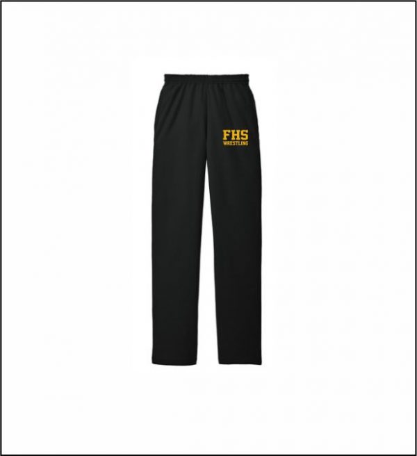 Freedom Wrestling – Open Bottom Sweatpants (Black) with screened logo left thigh