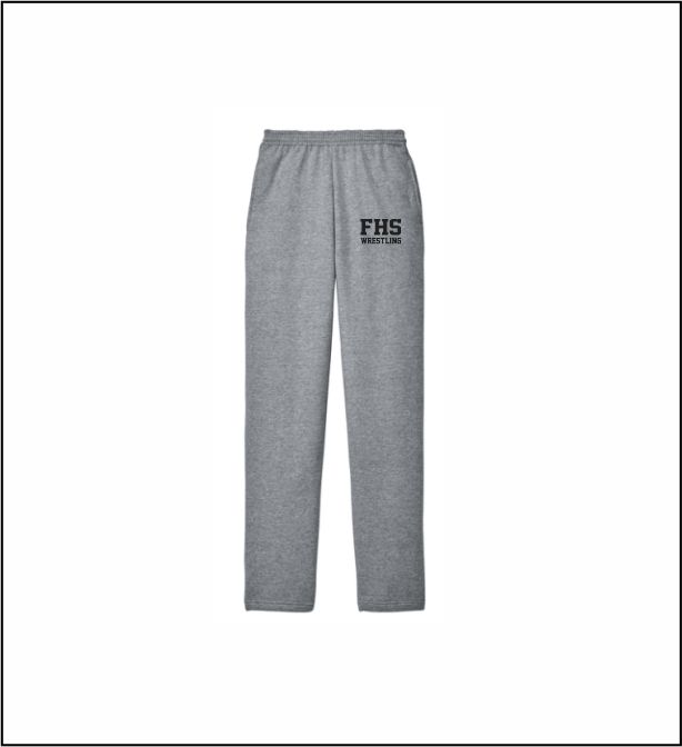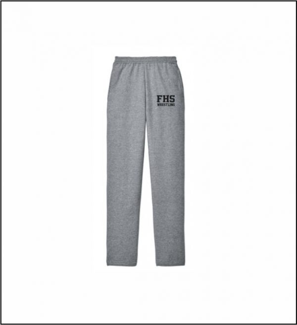 Freedom Wrestling – Open Bottom Sweatpants (Gray) with screened logo left thigh
