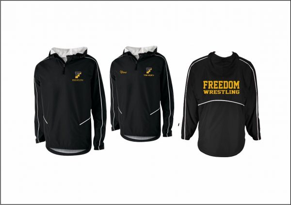 Freedom Wrestling – Hooded Pullover 1/4 Zip Jacket (Black/White) with embroidered left chest logo & logo on back
