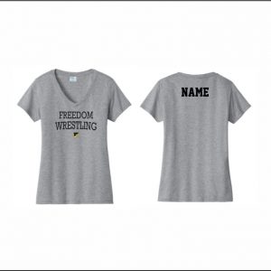 • Freedom Wrestling – 6. Ladies Short Sleeve Cotton V-neck (Gray – logo #1)
