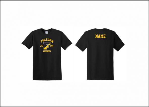 Freedom Wrestling – Short Sleeve Cotton T-shirt (Black – logo #2) with screened logo on front