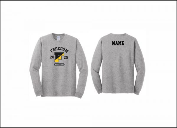Freedom Wrestling –  Long Sleeve Cotton T-shirt (Gray – logo #2) with screened logo on front