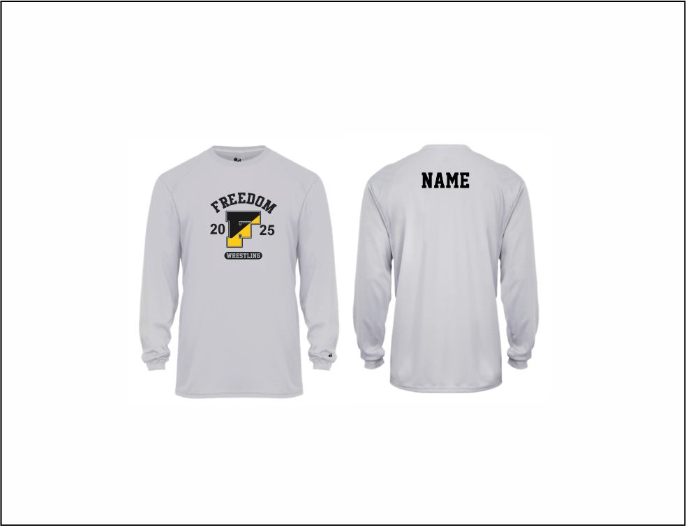 Freedom Wrestling – 41. Long Sleeve Performance shirt (Silver – logo #2)