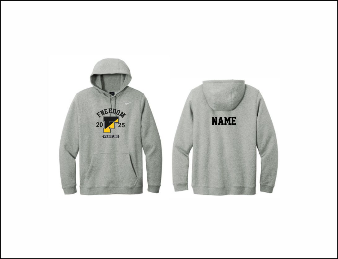 Freedom Wrestling – Nike Hooded Sweatshirt (Gray – logo #2) with screened logo on front