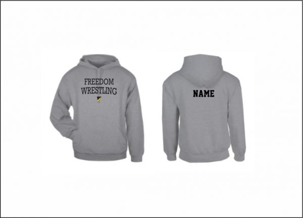 Freedom Wrestling – Hooded Sweatshirt (Gray – logo #1) with screened logo on front