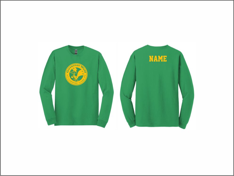 Governor Wolf – Long Sleeve Cotton T-shirt (Green) with logo on front