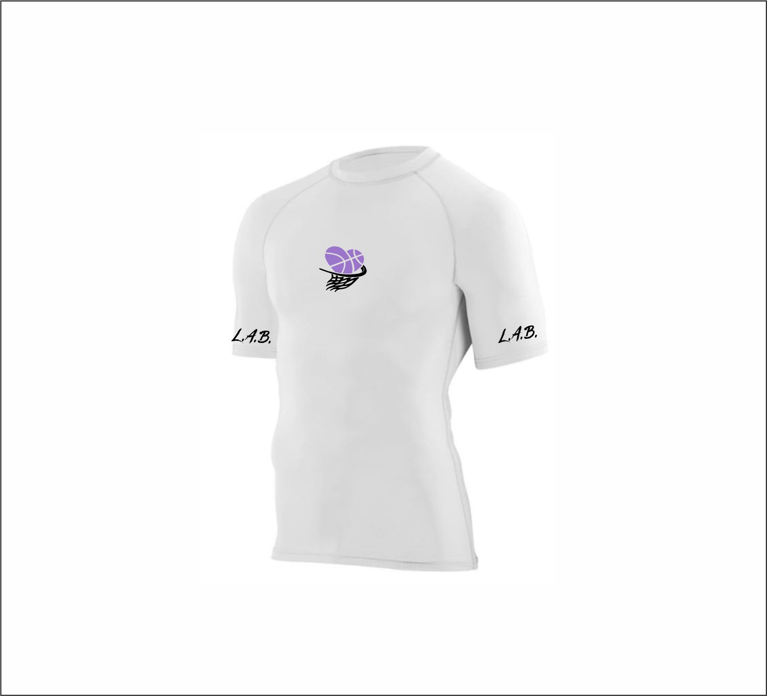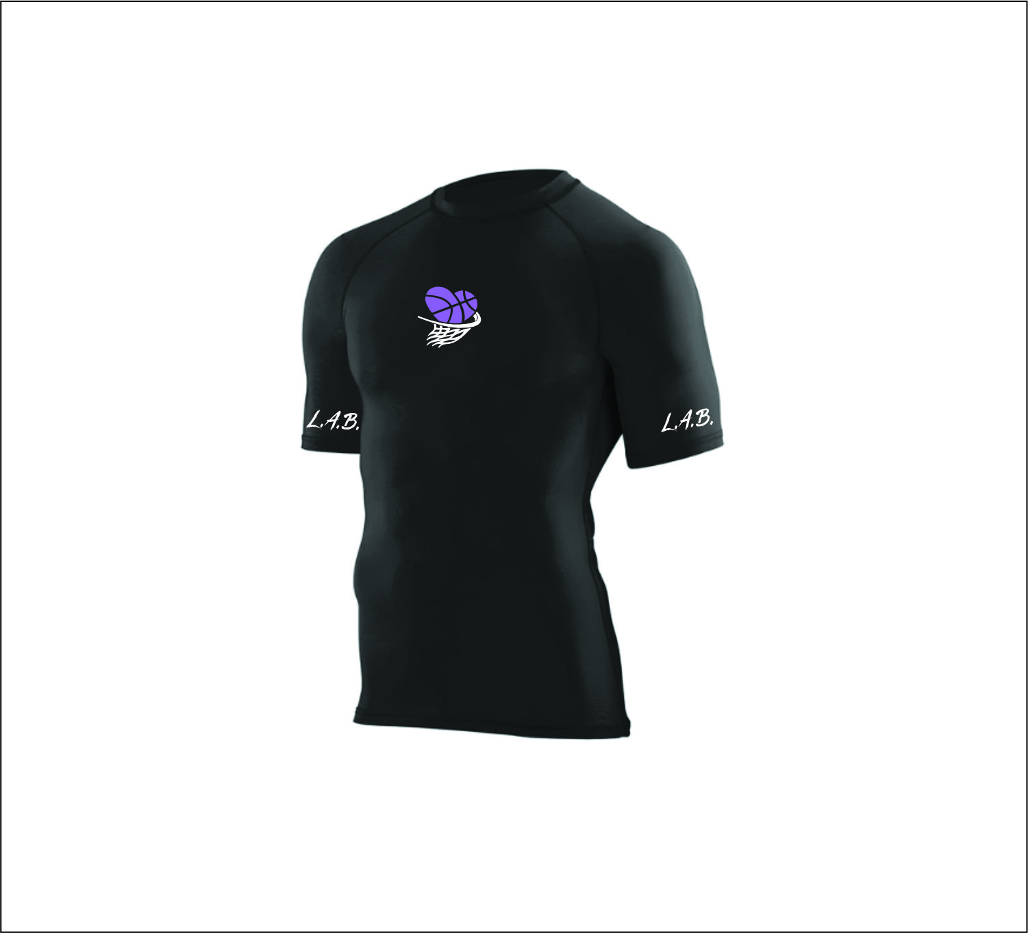 L.A.B. Basketball – Short Sleeve Compression Shirt (Black or White) with logo on front & sleeves