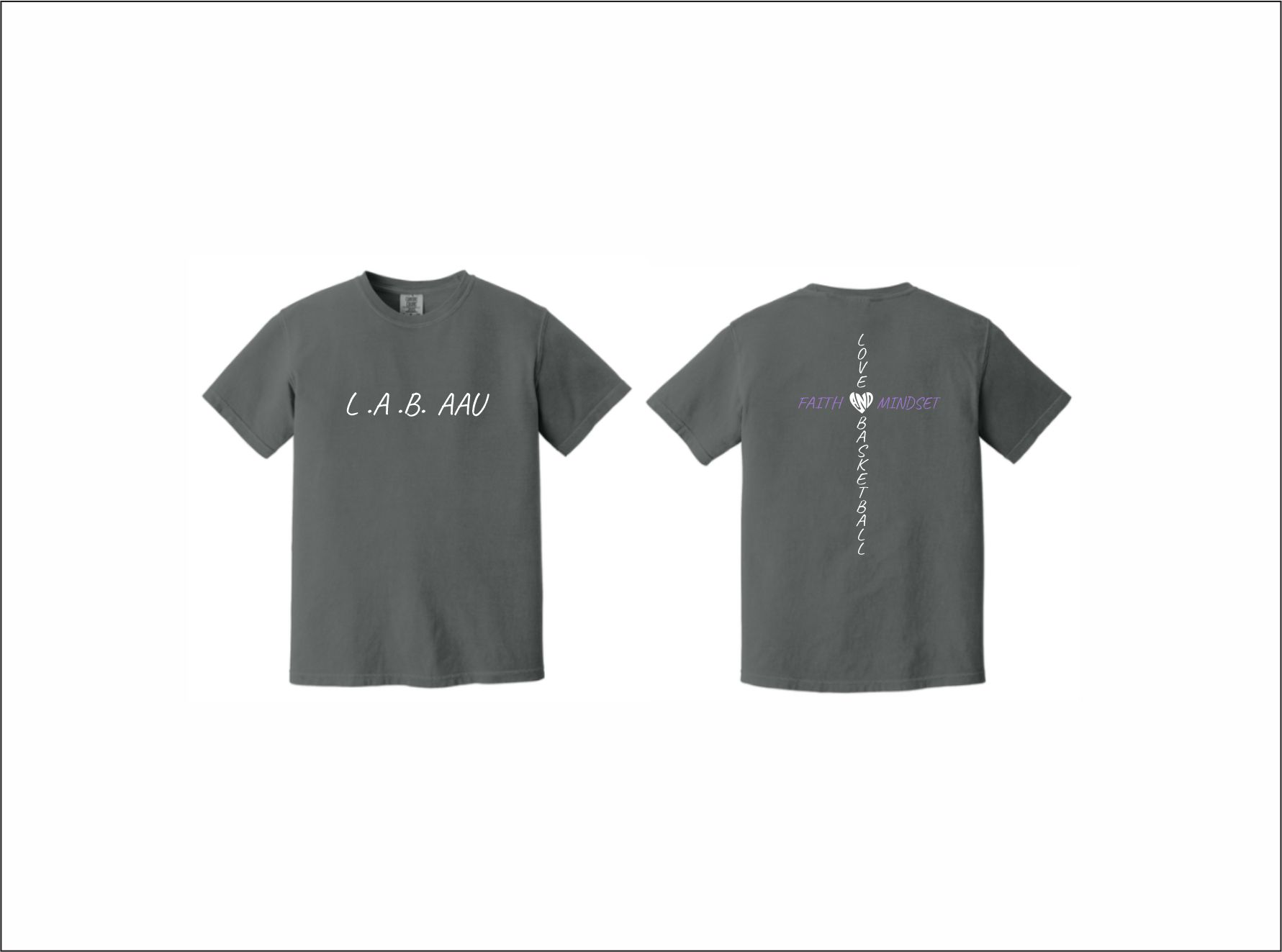 L.A.B. Basketball – Short Sleeve Garment Dyed T-Shirt (Charcoal) with logo front & back